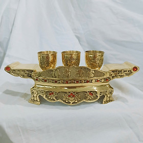 Mua tại TiktokSản phẩm là bộ ly nước thờ cúng bằng đồng Bộ 3 ly màu vàng bóng Bộ 5 ly màu vàng bóng Bộ 5 ly màu hun Chất liệu đồng vàng Bộ 3 ly gồm Khay 3 dài 25cm + 3 chén trơn Bộ ly 5 gồm 1 Khay 5 dài 34cm rộng 5.5cm cao 8cm nặng 1kg + 5 ly hoa văn. Khay đúc nổi hoa văn rồng