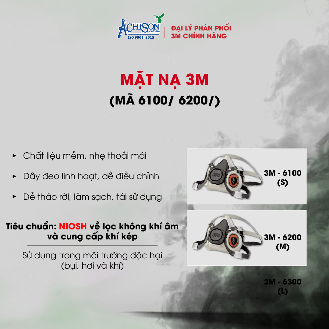 Bộ mặt nạ chống hóa chất 3M 6100/6200 + Phin lọc 3M 6003 - mặt nạ bảo vệ hô hấp Sản phẩm chính hãng 100% được phân phối bởi BHLD ECO ️ Bộ mặt nạ