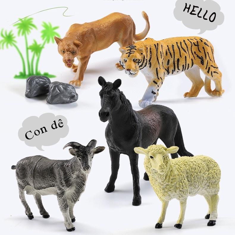 Bộ đồ chơi trẻ em mô hình động vật set 58 chi tiết thú rừng hoang dã nhựa an toàn cho bé
