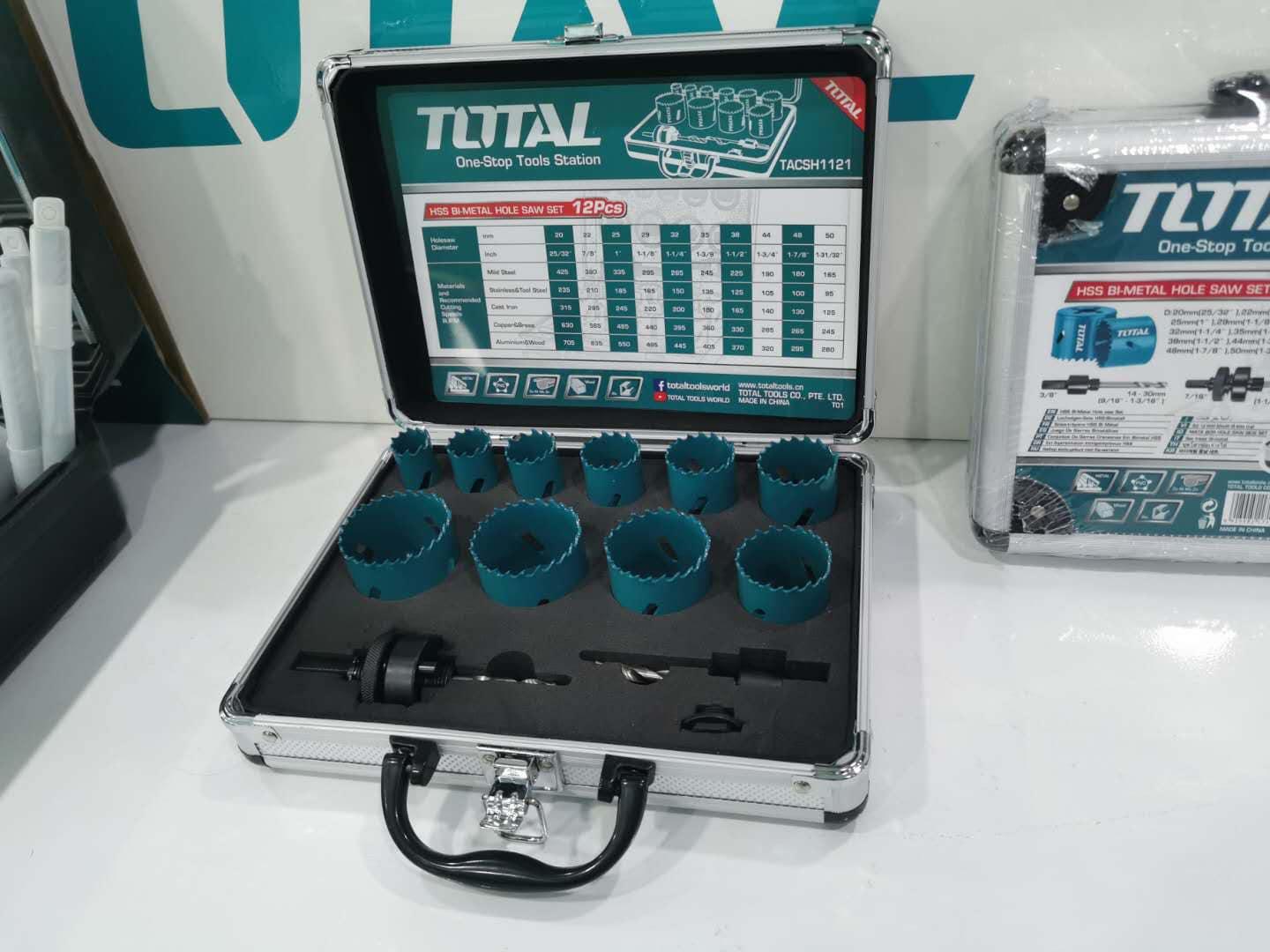Thông số kĩ thuật -Mã sản phẩm: TACSH1121 -Nhà sản xuất: Total -Size:20mm,22mm,25mm,29mm,32mm,35mm,38mm,44mm,48mm,50mm, -2 lưỡi cưa khoét răng cưa - 10/T