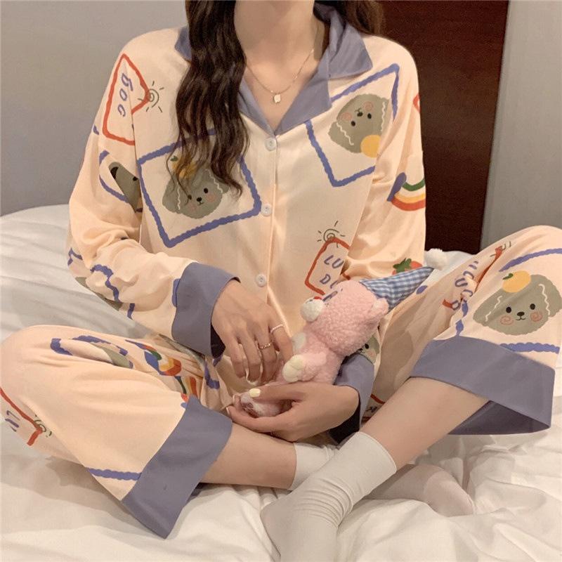 ✨Bộ Ngủ Pijama Nữ HÀNG CÓ SẴN Bộ mặc nhà, Bộ Đồ Ngủ Chất Liệu Cotton Sợi Tơ Sữa Dài Tay Họa Tiết Dễ Thương Cao Cấp