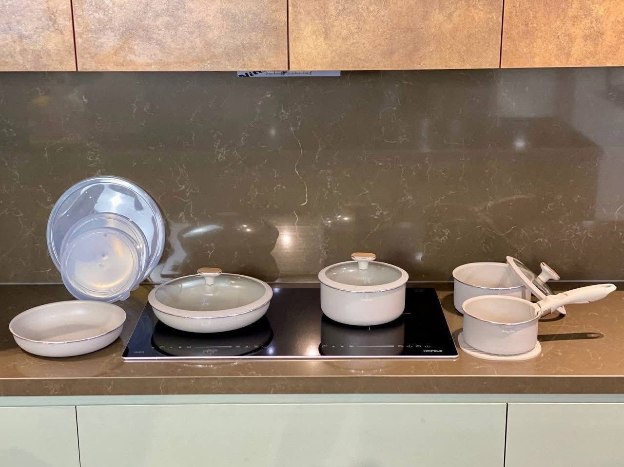 Gồm đầy đủ nồi, chảo, quánh, lót nồi, tay cầm tháo rời – phục vụ mọi món ăn từ Âu đến Á.