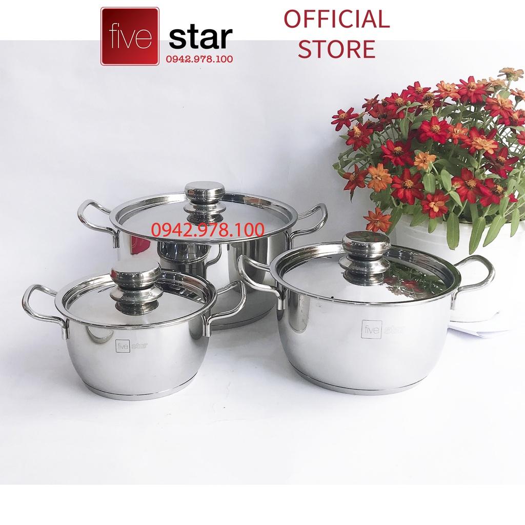 Bộ 3 nồi Inox 3 đáy Fivestar FSB3028 và FSB3010 quai cong nắp kính/Inox, BH 5 năm Zalo 0986588655