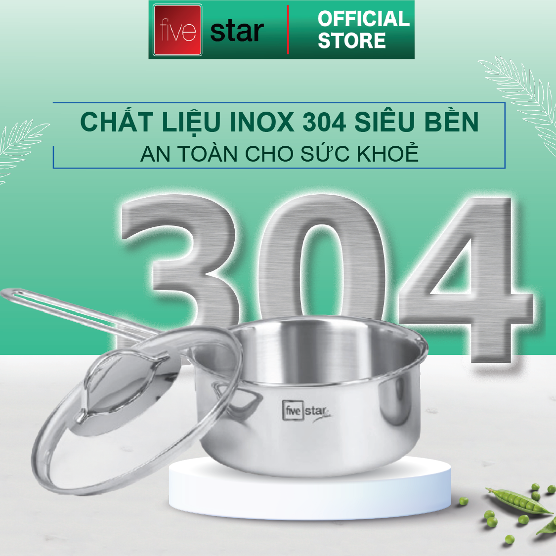 Bộ Nồi Chảo 3 Đáy Inox 430 Cao Cấp Fivestar Standard 6 món nắp kính , tặng 5 muỗng ăn