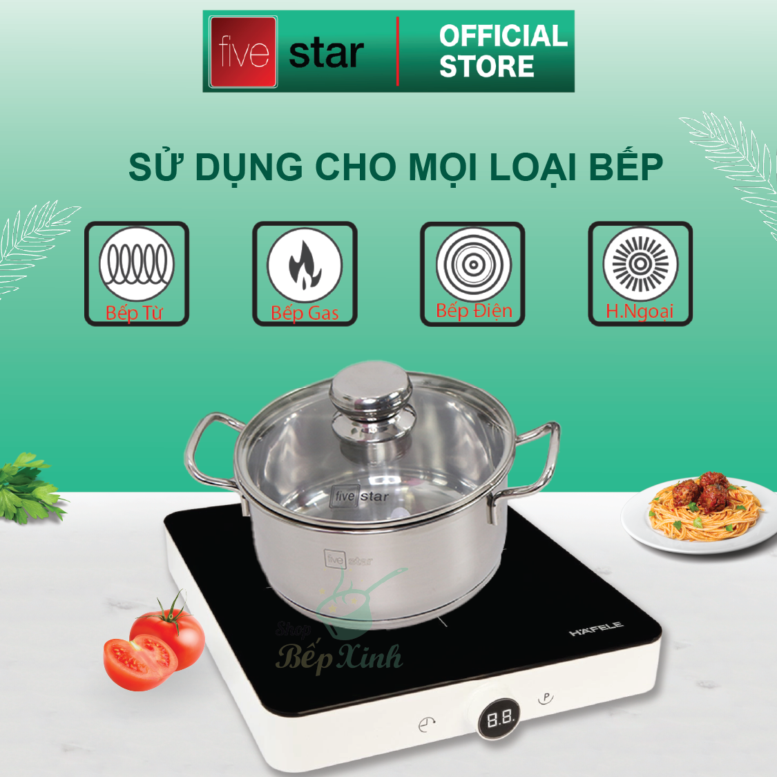 ✨Bộ Nồi 5 Đáy Cao Cấp Bếp Từ Fivestar FSB55D001 Nắp Kính Inox 430 ( 1 quánh16cm x N18cm x N20cm x N24cm x C 24cm ) , tặng 1 vá canh