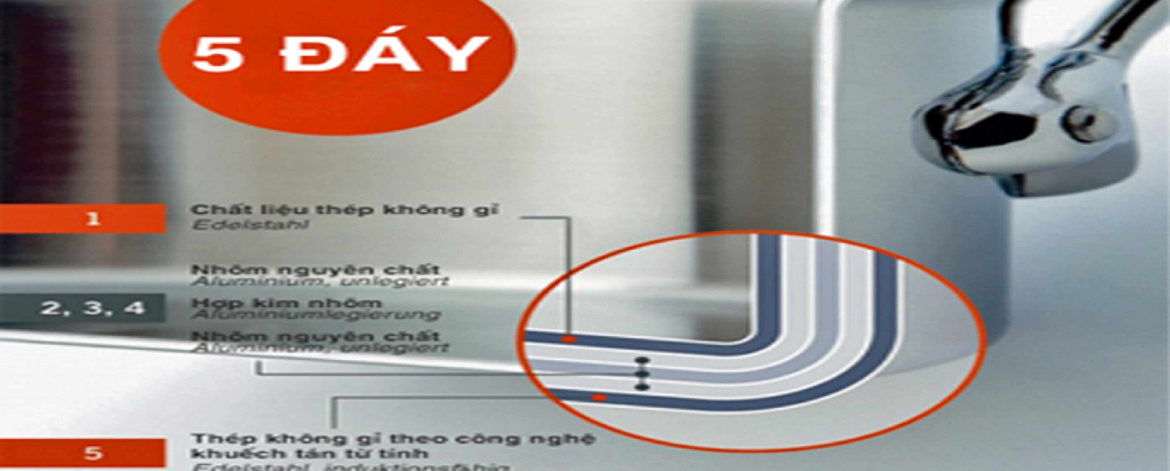 Đáy 5 lớp dày 6mm kết hợp với lớp giữa là lớp nhôm giúp phân phối nhiệt đều giữ nhiệt lâu