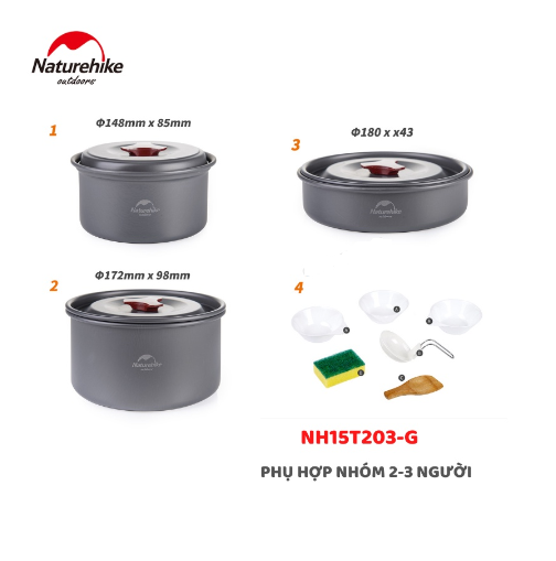 Bộ Nồi Cắm Trại 2-3 Người Naturehike NH15T401-G