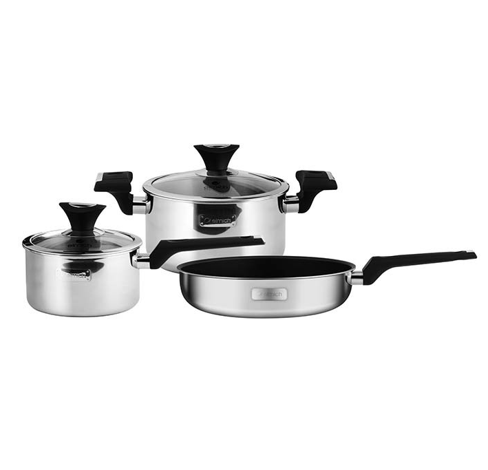 ✨Bộ nồi chảo Elmich EDA-0866 ( inox 3 lớp đáy liền cao cấp - quánh 16, nồi 20, chảo 24cm) - Hàng chính hãng