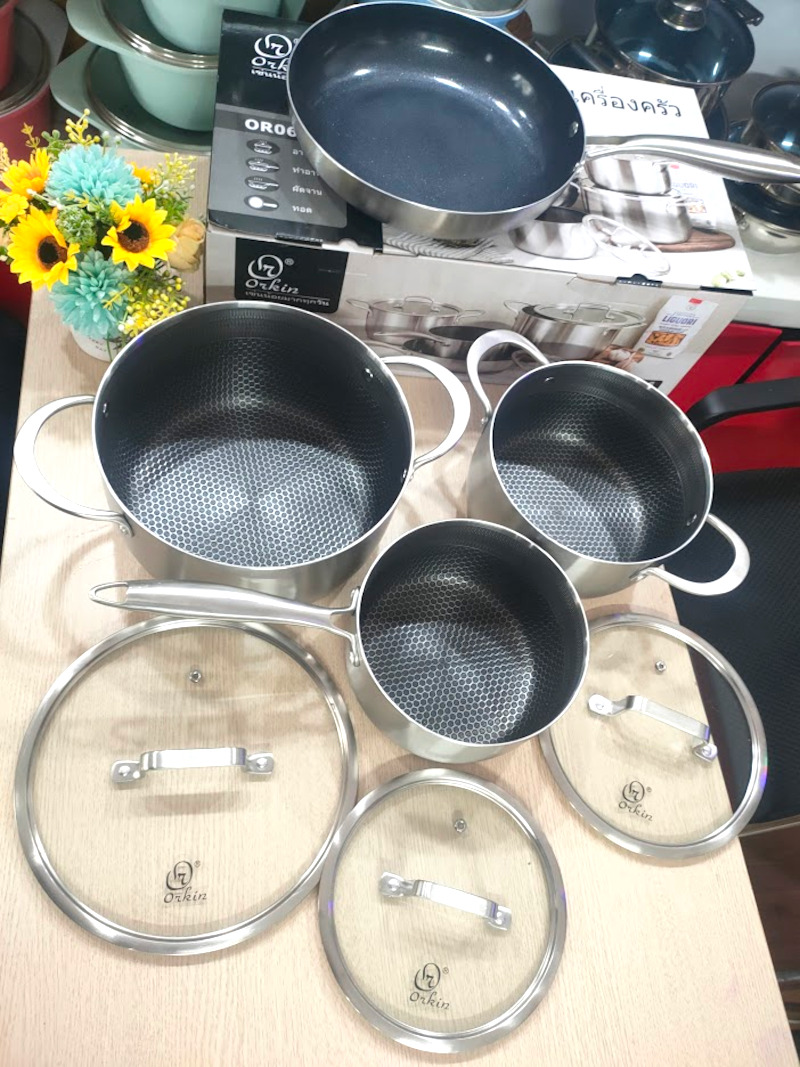 Bộ nồi chảo Inox 304 chống dính Blackcube Orkin Thái Lan OR06 thân đúc đáy liền