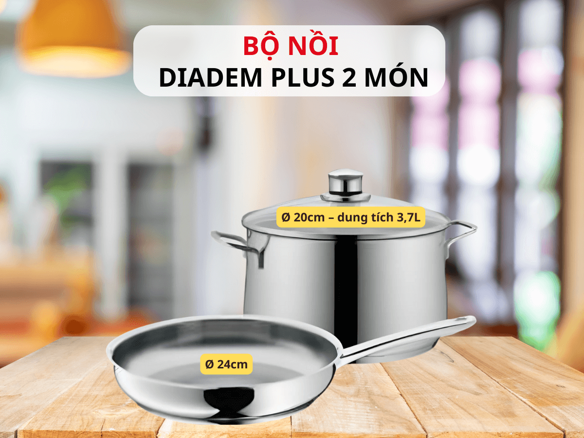 Bộ nồi từ Elo Smaragd Plus gồm: - 01 nồi đường kính 24cm - Dung tích 5L – Vung kính - 01 nồi đường kính 20cm - Dung tích 3L – Vung kính -