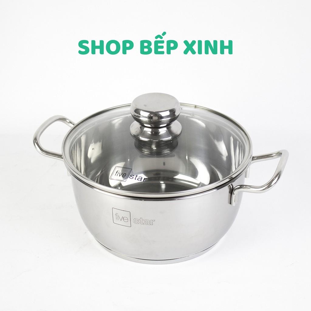 Bộ nồi chảo xửng hấp 3 Đáy Inox 430 cao cấp Fivestar Standard bếp từ nắp kính , tặng 1 vá canh