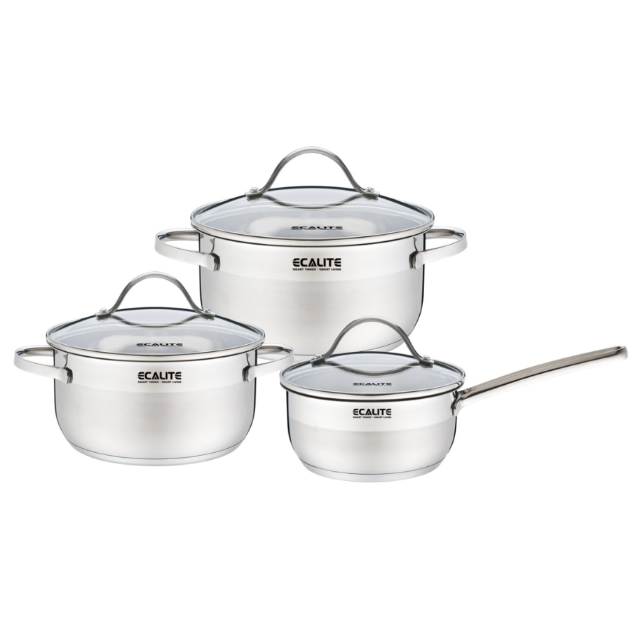 Nhằm biết được thị hiếu của người tiêu dùng hiện nay, đặc biệt là các chị em phụ nữ trong việc lựa chọn nói chung và bộ nồi nói riêng sao cho đáp ứng đa dạng nhu cầu khác nhau. Chính vì vậy Ecalite đã thiết kế bộ nồi gồm 1 nồi cỡ lớn, 1 nồi cỡ trung và 1 quánh cỡ nhỏ với đường kính lần lượt là: