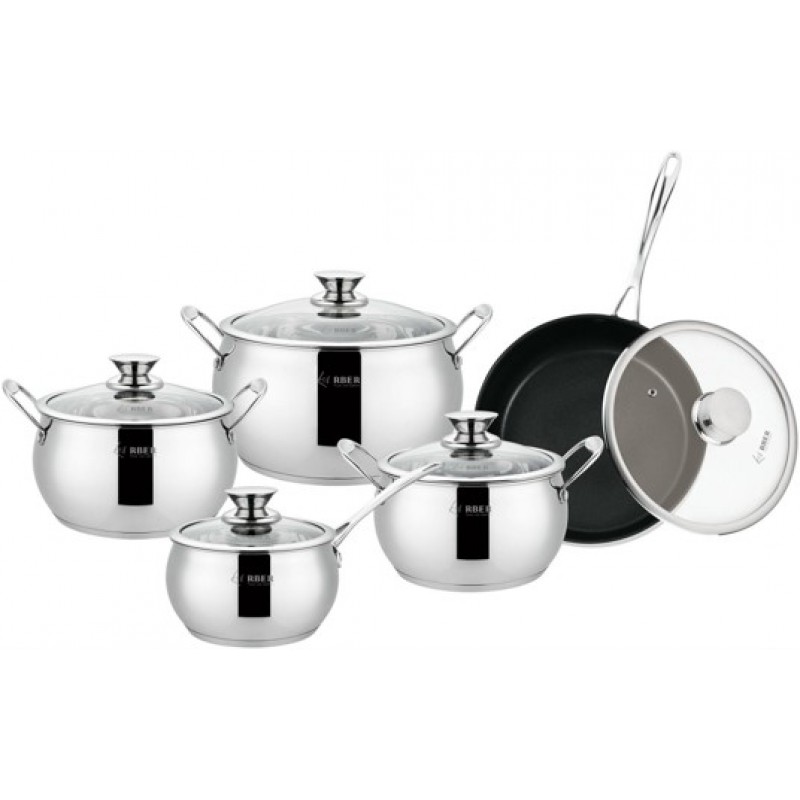 Bộ nồi từ chảo 5 chiếc cao cấp kiểu dáng sang trọng ARBER làm bằng chất liệu thép không gỉ, đáy bộ nồi 3 đáy siêu bền khi sử dụng, bộ nồi tiếp xúc nhiệt nhanh, êm, tản nhiệt đều khi nấu. Bộ nồi từ 5 chiếc cao cấp ARBER đạt các tiểu chuẩn và chất lượng được cấp chứng chỉ sản phẩm. Bộ sản phẩm chuẩn: + 01 nồi 24cm + 01 nồi 20cm + 01 nồi 18cm + 01 quánh 16cm + 01 chảo chống dính.