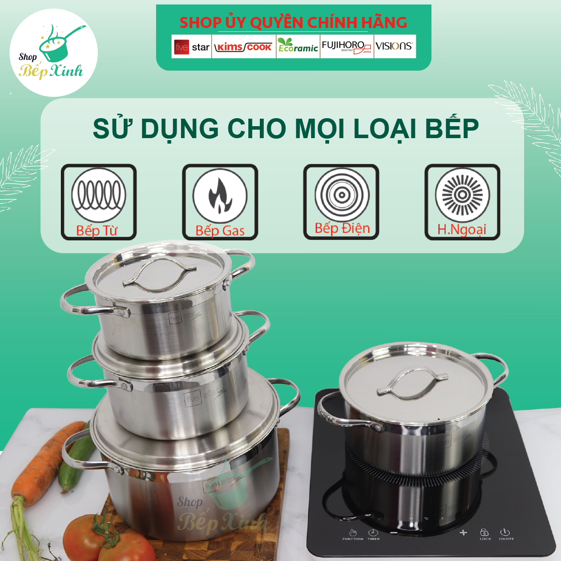Tính năng nổi bật: – Được tạo ra bằng chất liệu thép không gỉ cao cấp (inox) 18/10 – Có thể sử dụng trên mọi loại bếp – Đáy nồi được thiết kế tới 5