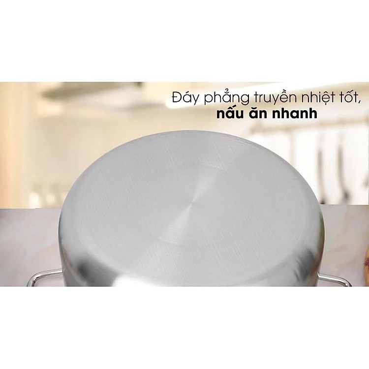 Đáy nồi được thiết kế 1 lớp làm tăng khả năng giữ nhiệt lâu hơn, đồng thời nó còn giúp nồi tỏa nhiệt đều, khắc phục nhược điểm của inox.