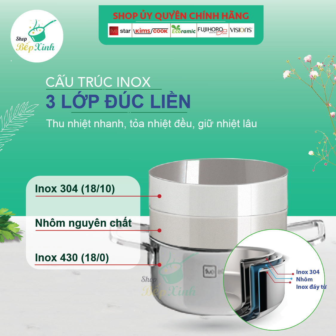 Bộ 3 inox 304 đúc liền khối xịn đẹp fivestar bảo hành 25 năm zalo 0986588655