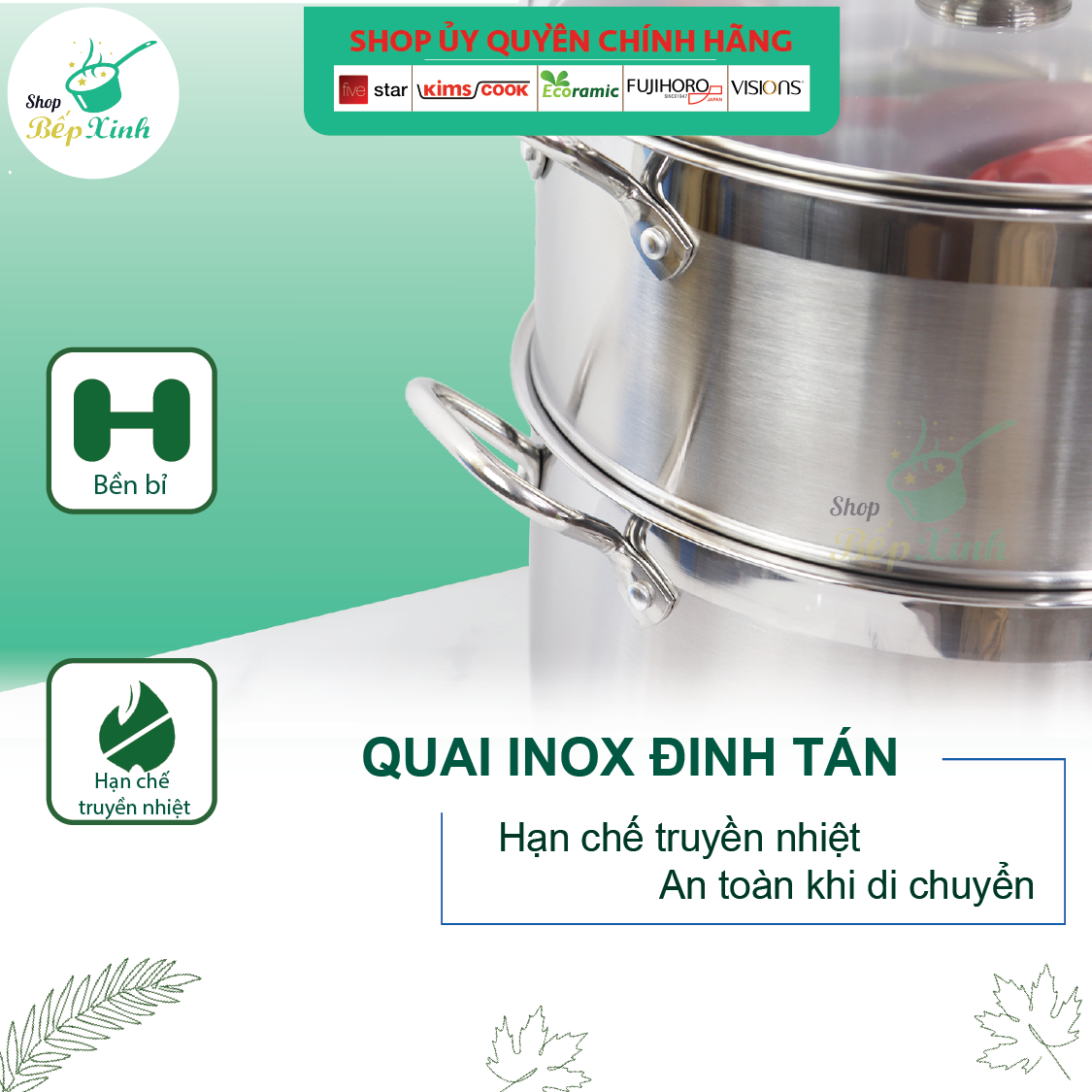 ✨Bộ nồi xửng hấp inox 430 Fivestar standard nắp inox ( 28cm ),tặng 5 muỗng ăn ,3 đáy bếp từ , gas, hồng ngoại