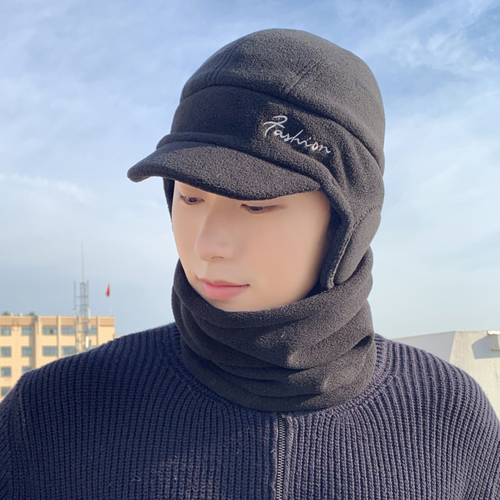 PVN55244 Mũ len cho nam kèm khăn choàng cổ mùa đông giữ ấm tốt