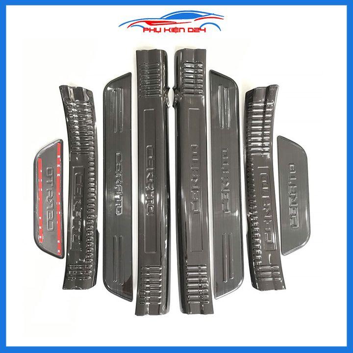 Bộ ốp bậc cửa trong ngoài nẹp bước chân Cerato 2014-2015-2016-2017-2018 vân Titan chống trầy trang trí xe