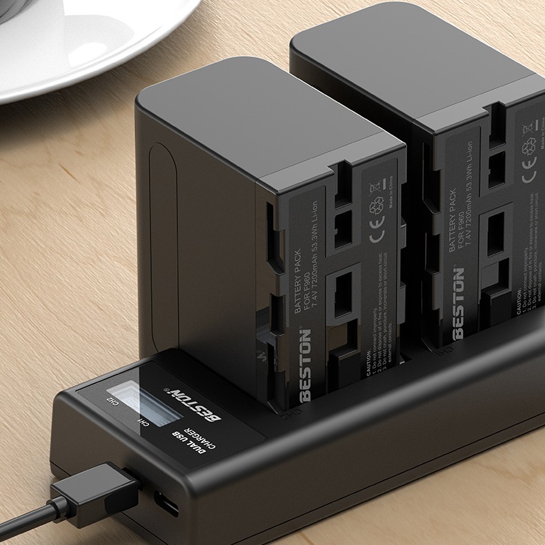 Bộ Pin F960/F750 7200mAh + Sạc Beston Dùng Cho Máy Ảnh Sony 6D 70D 60D 80D 5D3 5D2 6D2 7D2 5DSR 90D NX5 TRV1 TRV3 NX100 NX3 200 300 3000   BESTON ĐƠN VỊ DẪN ĐẦU TRONG NGÀNH SẢN XUẤT PHỤ KIỆN ĐIỆN THOẠI/ IT/ KỸ THUẬT SỐ - THƯƠNG HIỆU CAO CẤP QUỐC TẾ   Được thành lập từ năm 2007, Beston từng bước thiết lập danh tiếng trên con đường tự phát triển thương hiệu riêng của mình. Với việc tạo ra các sản phẩm chất lượng cao thời thượng Beston đã dần chiếm được lòng tin của người tiêu dùng. Sản lượng tăng nhanh chóng và liên tục đứng đầu ngành.   Các sản phẩm chính hãng thương hiệu quốc tế Beston, BTY bao gồm: pin điện thoại, bộ sạc; pin máy ảnh kỹ thuật số, bộ sạc và các thiết bị ngoại vi khác…   Sạc đôi kèm pin Beston F960/F750 7200mAh là một sản phẩm mới nhất 2022 vô cùng hữu ích và tiện dụng cho các dòng máy ảnh Sony, dung lượng pin lớn giúp người dùng có thể thoải mái sử dụng máy ảnh trong một thời gian dài mà không lo hết pin, làm gián đoạn quá trình quay, chụp.   THÔNG SỐ SẢN PHẨM: ** Pin F960: