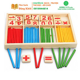 ️ Quy cách sản phẩm: ️ Bao gồm: 24 ô vuông nhỏ in số số từ 0 đến 9 và các dấu cộng, trừ, nhân, chia, bằng; 04 ô đựng các que tính nhiều màu sắc - mỗi ô gồm 13 que tính.