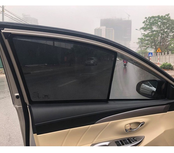 CHẮN NẮNG TOYOTA VIOS, BỘ 4 MIẾNG CHẮN NẮNG VẢI LƯỚI GẮN NAM CHÂM HÚT Tính năng: - Bộ rèm che nắng có nam châm giúp cố định miếng che nắng vào phía bên trong