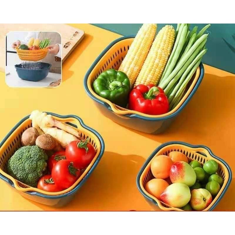 Rổ Rửa Rau Củ Quả Hai Lớp Ráo Nước Trong Suốt Dùng Trong Nhà Bếp - Rổ Đa Năng 2 Trong 1 - Hàng Chính Hãng MINIIN Chậu rửa Rổ thoát nước hai lớp này