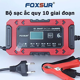 Bộ Sạc Ắc Quy FOXSUR 12V 6A Hàng Nhật – Sạc Thông Minh 10 Giai Đoạn, Khử Sunfat, Tự Động Ngắt Cho Ắc Quy 4AH - 120AH