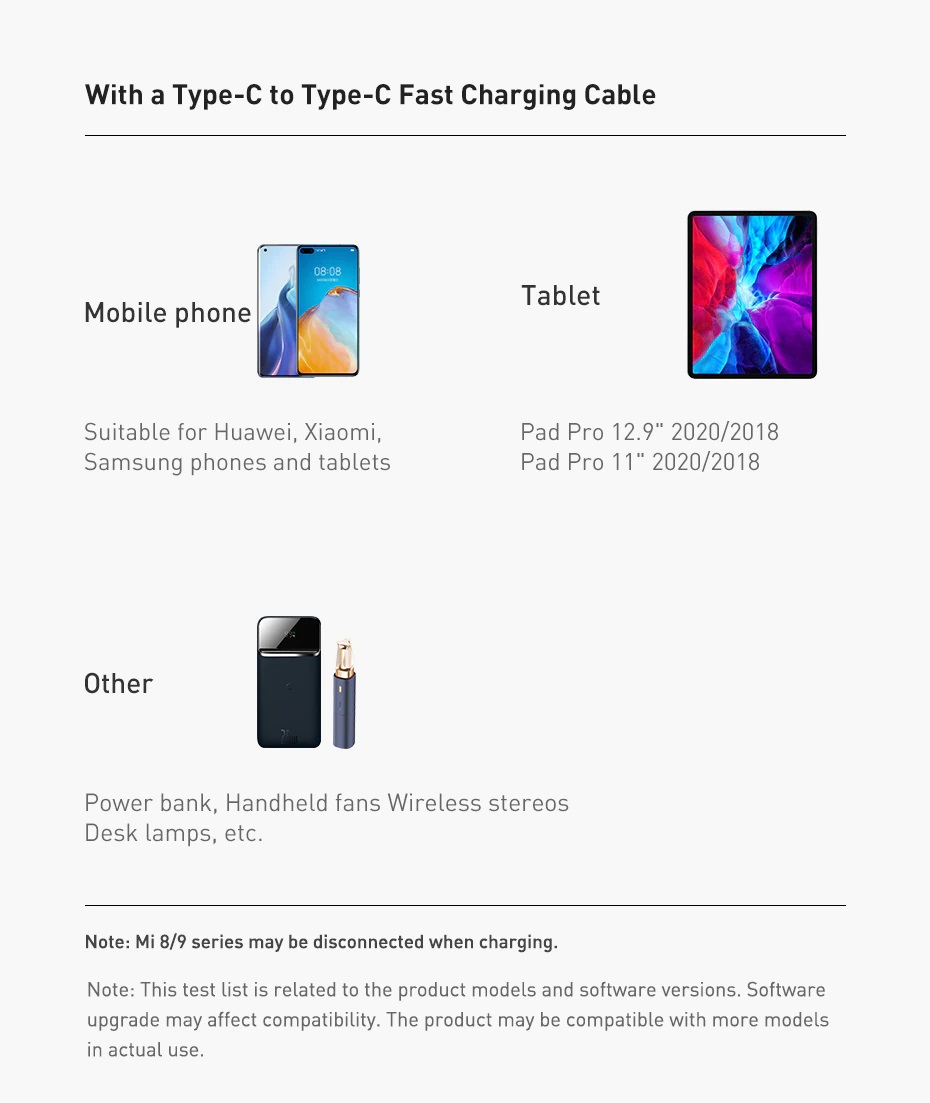 1. Input: 100-240V~50/60Hz 700mA Max 2. Output: 5V/3A 9V/2.77A 12V/2.08A 3. PPS: 3.3~11V/2.25A 4. Total Output Power: 25W Max 5. Compatible with: 6. PD3.0 (PD2.0) 7. QC4.0+ (QC4.0/QC3.0/QC2.0) 8. FCP/AFC/PPS 9. BC1.2--5V1.5A 10. UL, PSE,