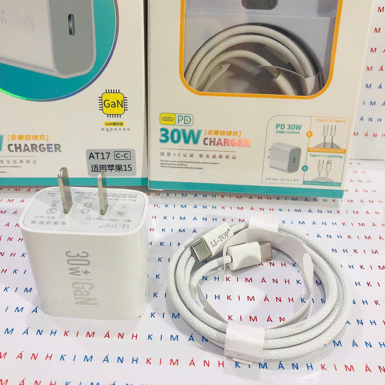 Bộ sạc nhanh LI-TOP GaN AT17 chân Type C công suất PD 30W, có chứng nhận 3C tiêu chuẩn quốc gia, hàng chính hãng, cho dùng thử 30 ngày hoàn trả