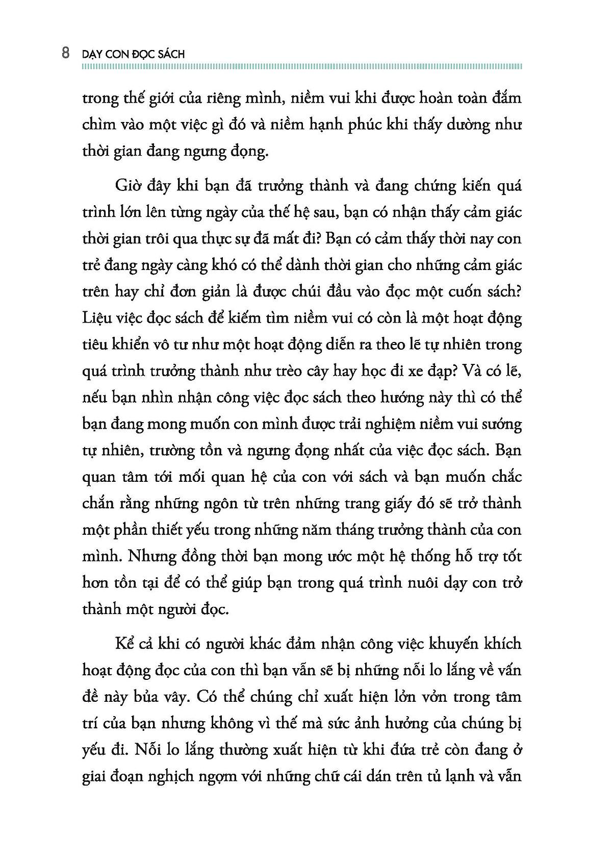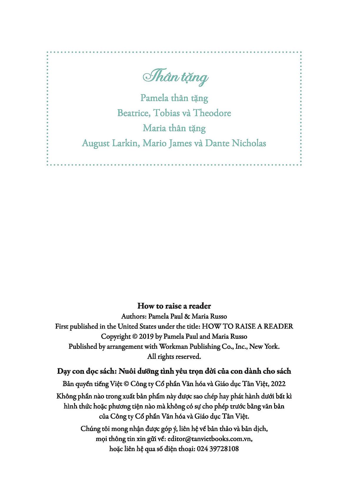 Cuốn Dạy con đọc sách kết hợp những lời khuyên dễ hiểu, thực tế, cùng với niềm cảm hứng, sự dí dỏm, những bí quyết thú vị và danh sách đọc được chọn lọc kĩ lưỡng bởi hai biên tập viên chuyên mục đánh giá sách hàng đầu của tờ New York Times, Pamela Paul & Maria Russo. Cuốn sách sẽ chỉ cho bạn cách tạo sự thích thú và niềm vui quên thời gian cho con trẻ từ việc đọc sách.