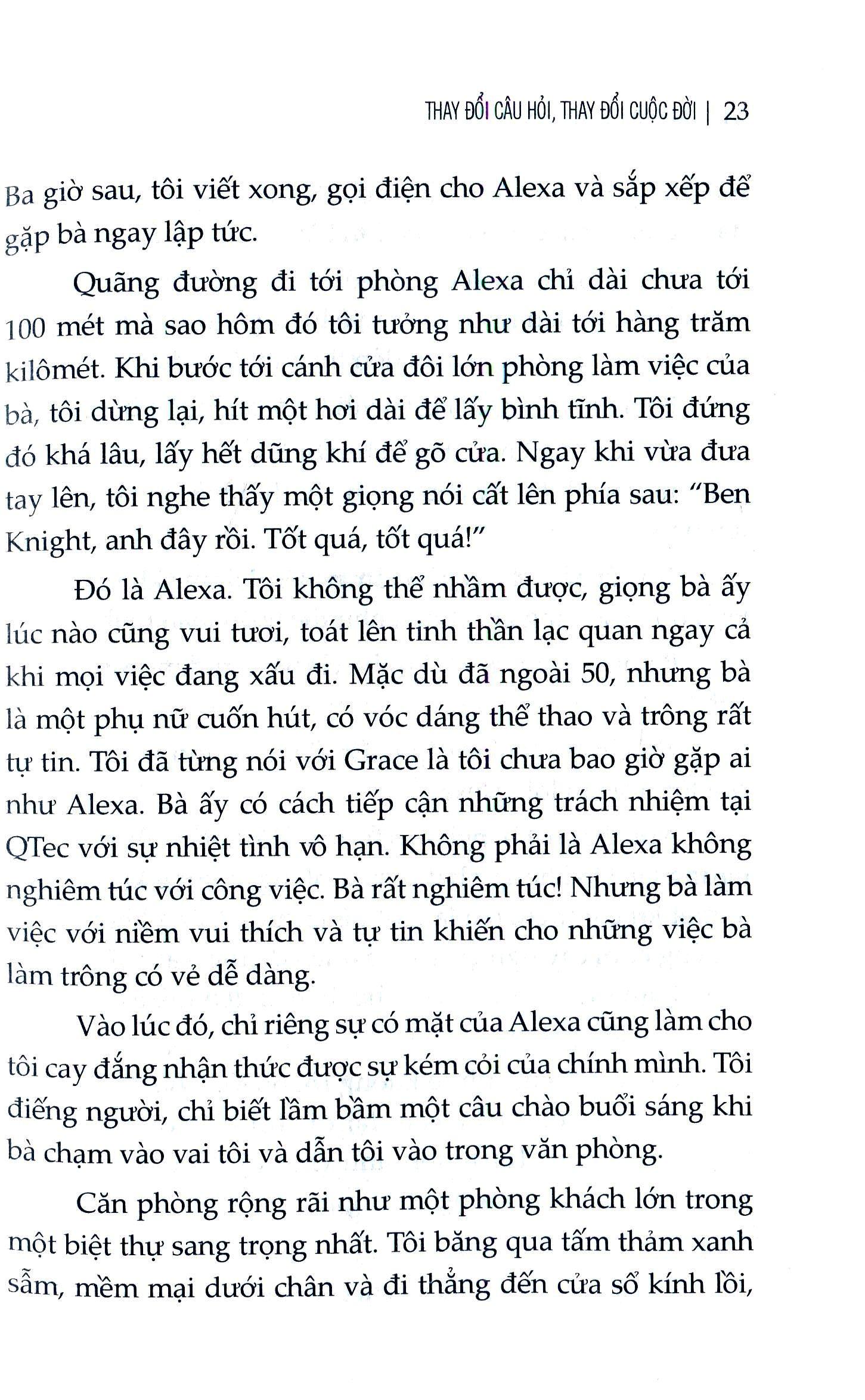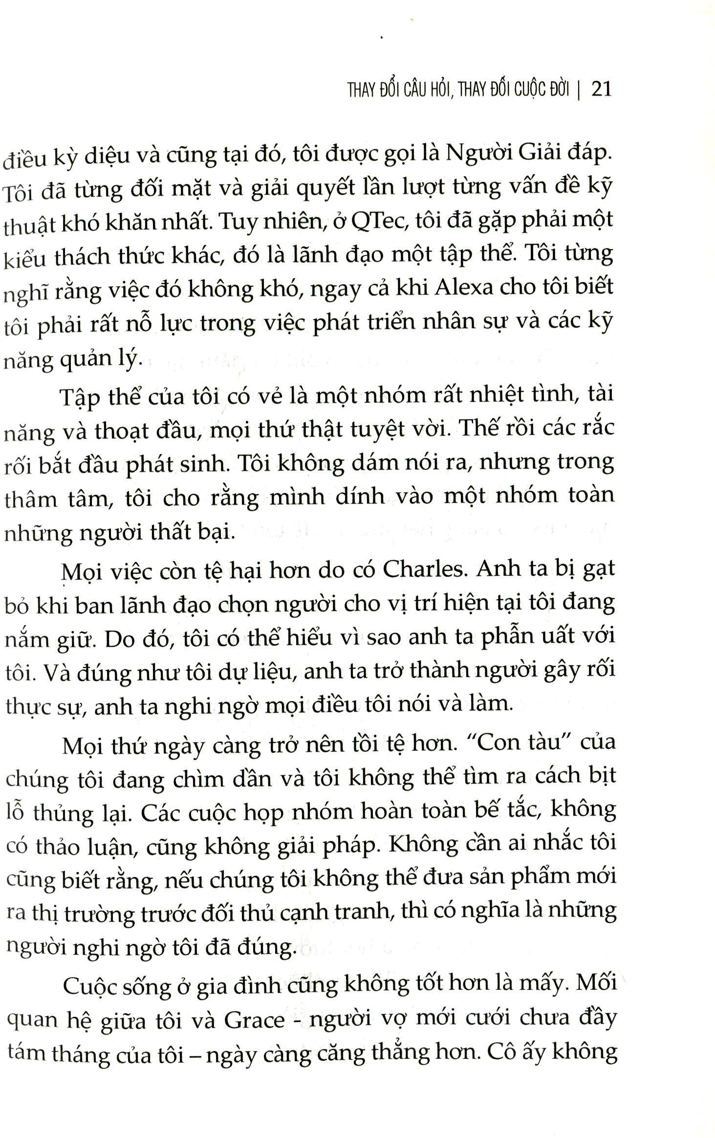 “Thay Đổi Câu Hỏi - Thay Đổi Cuộc Đời là một cuốn sách tuyệt vời. Với văn phong rõ ràng, dễ hiểu, Marilee đưa ra cách thức mà chúng ta có thể làm theo để chủ đích thay đổi cách nghĩ của m.ình. Bà đã giới thiệu một công cụ vô cùng hữu dụng cho các huấn luyện viên, các nhà tư vấn, các chuyên gia và tất cả những người khao khát muốn thay đổi cuộc đời minh.”