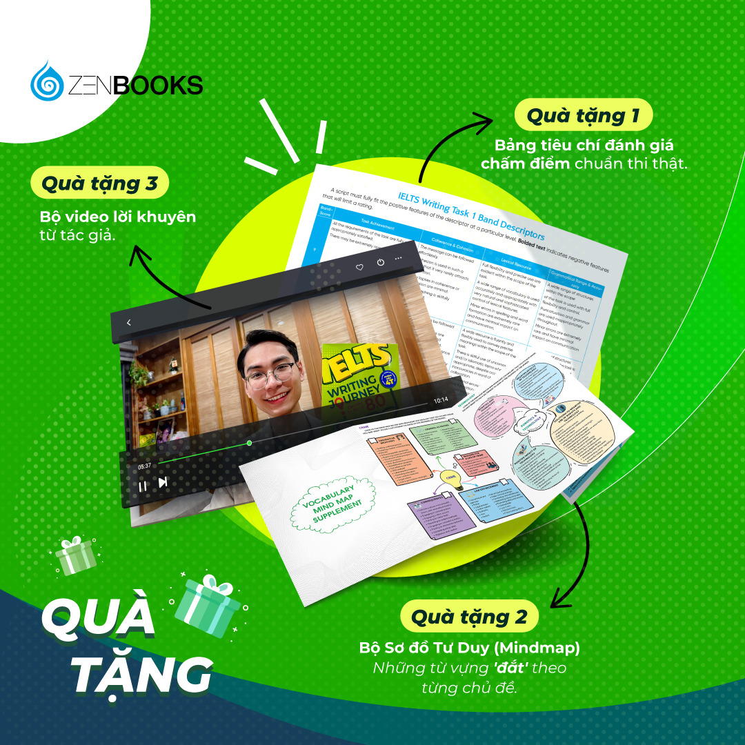Quà tặng gồm Bảng tiêu chí chấm điểm Việt hóa chuẩn thi thật (hoàn toàn bằng tiếng Việt) để bạn tự chấm điểm, tự đánh giá và chữa bài viết sau khi hoàn thành.