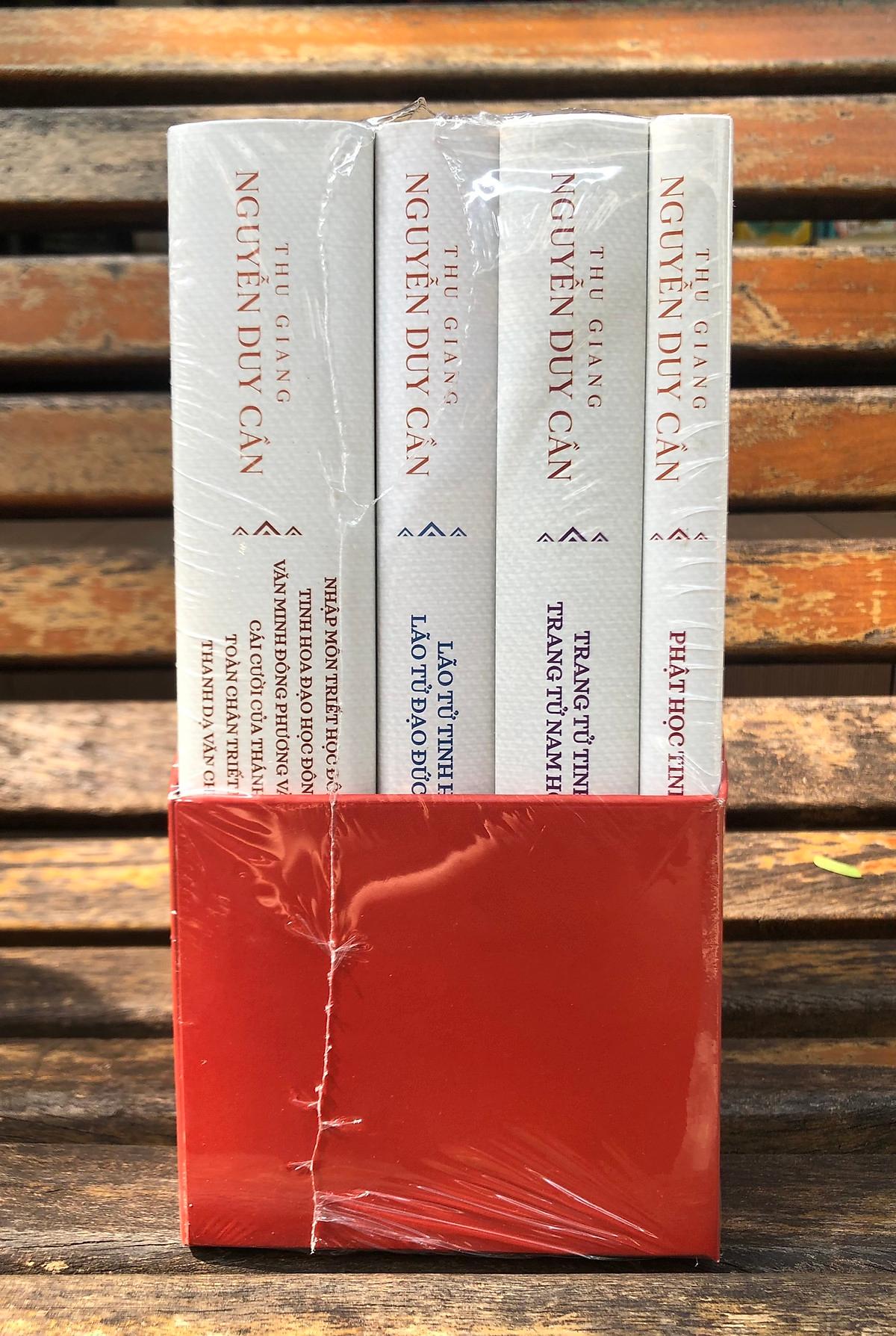 Bộ sách gồm 4 quyển sách bìa cứng, bụng sách mạ vàng: