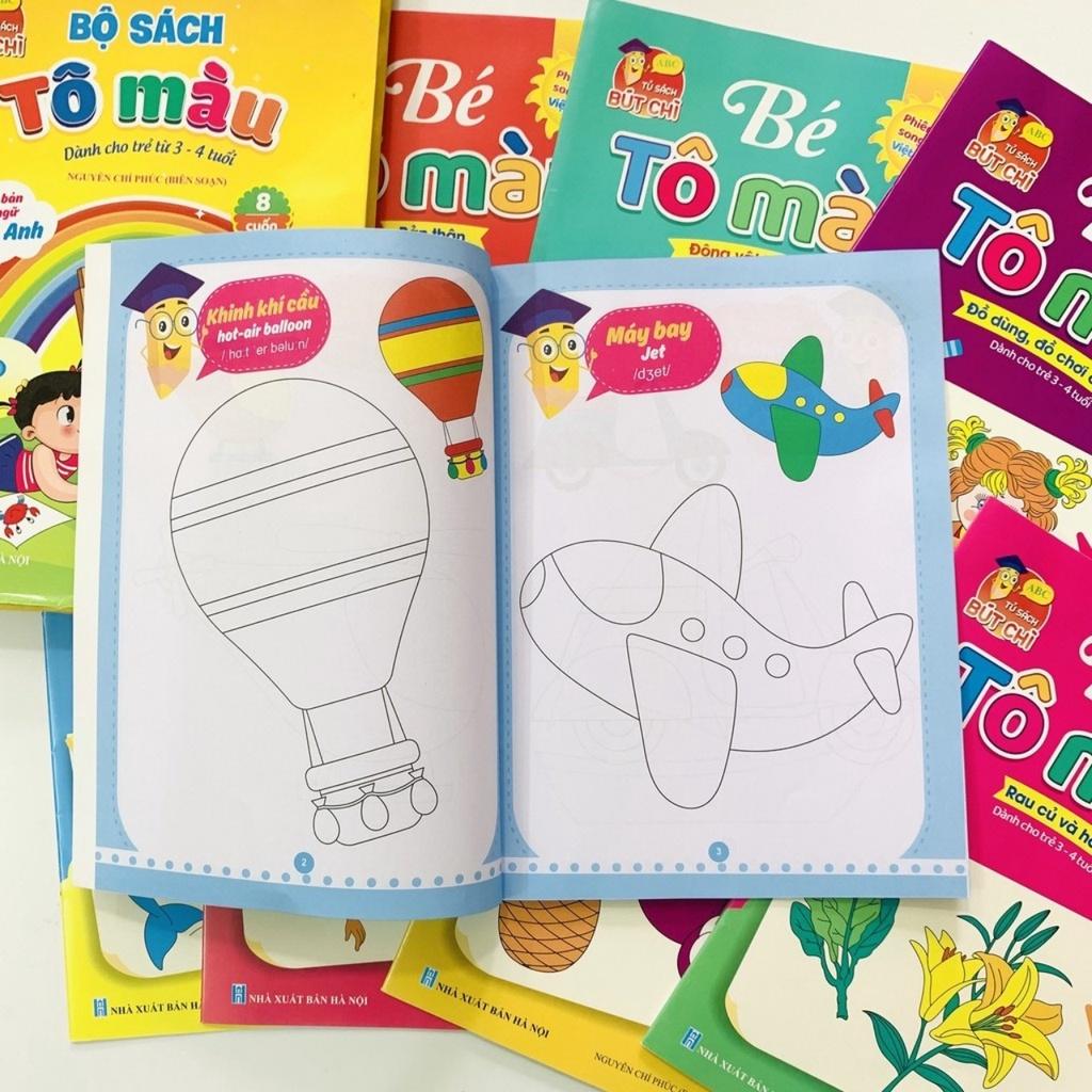 Bộ Sách Tô Màu Nhiều Chủ Đề Song Ngữ Anh -Việt Cho Trẻ Em 3 - 4 Tuổi (Túi 8 Cuốn)