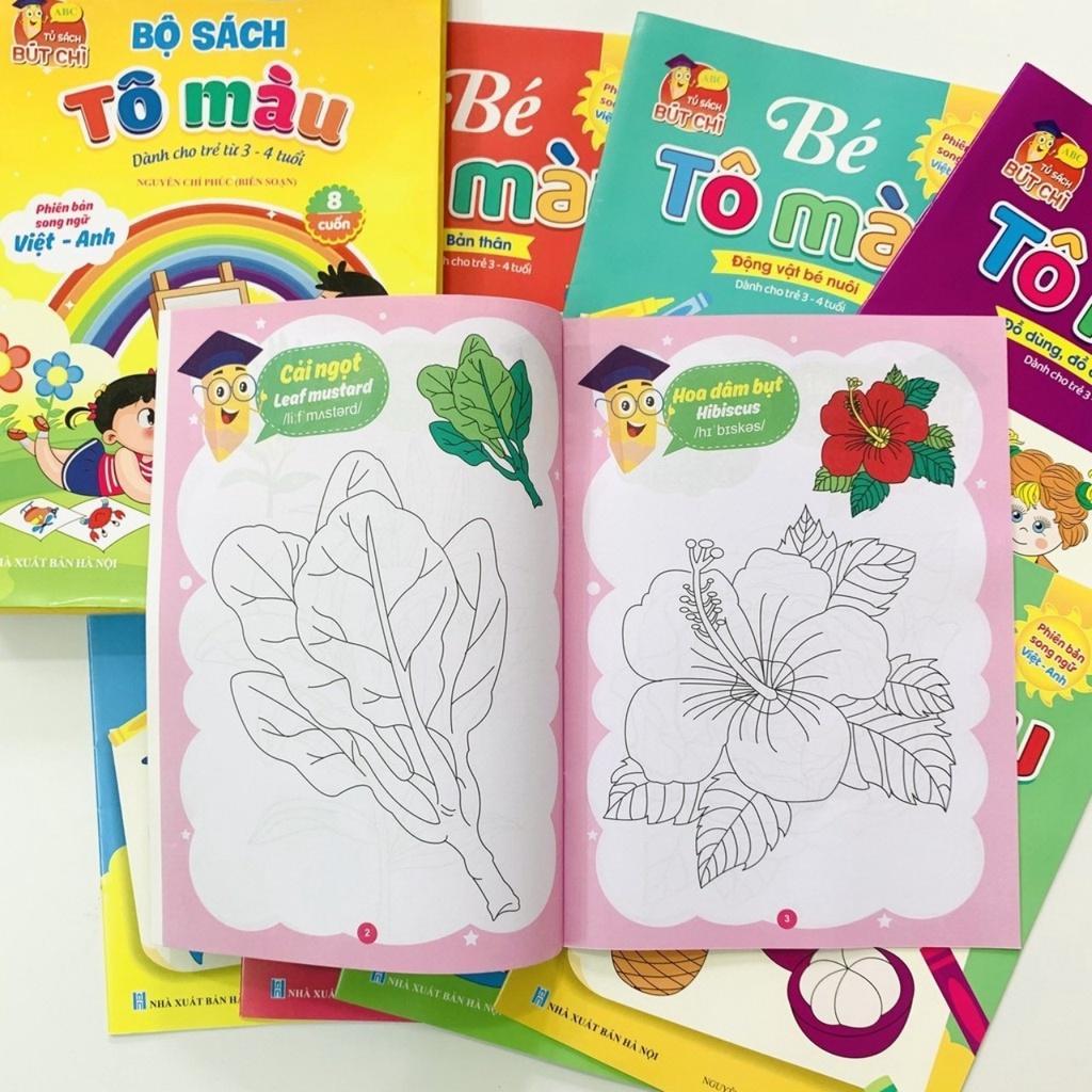 Giới thiệu Bộ Sách Tô Màu Nhiều Chủ Đề Song Ngữ Anh -Việt Cho Trẻ Em 3 - 4 Tuổi (Túi 8 Cuốn)