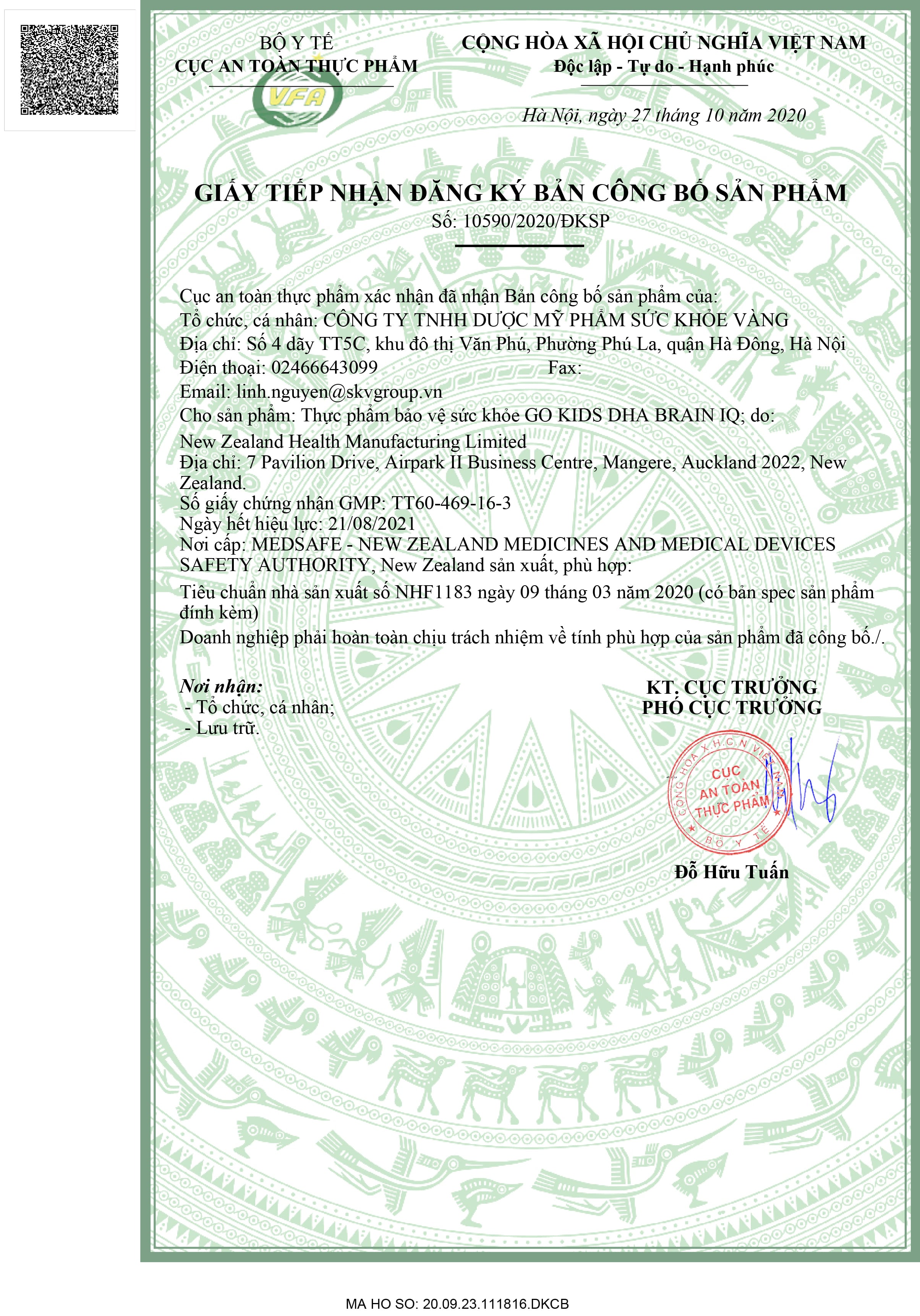 LƯU Ý: Thực phẩm này không phải là thuốc, không có tác dụng thay thế thuốc chữa bệnh SỐ ĐKSP CỦA BỘ Y TẾ: 10590/2020/ĐKSP