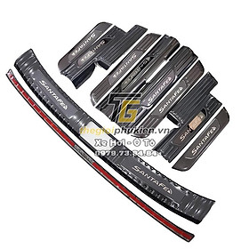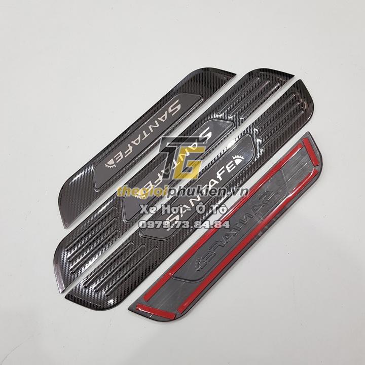 ✨BỘ SẢN PHẨM Nẹp bước chân và ốp chống trầy cốp Hyundai Santafe 2021 - Mẫu vân Carbon
