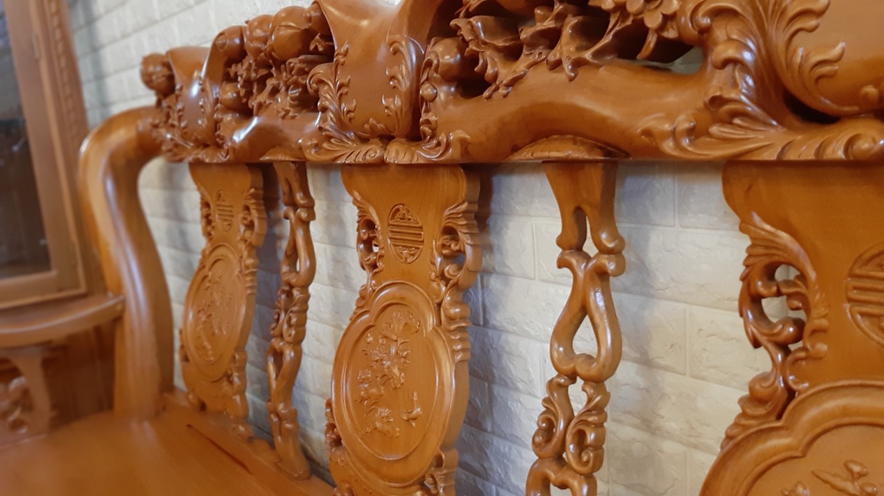 Có gì đặc biệt trên bộ bàn ghế phòng khách gỗ Hương đá giá 18,5 triệu tại @đồ gỗ Quang Định.