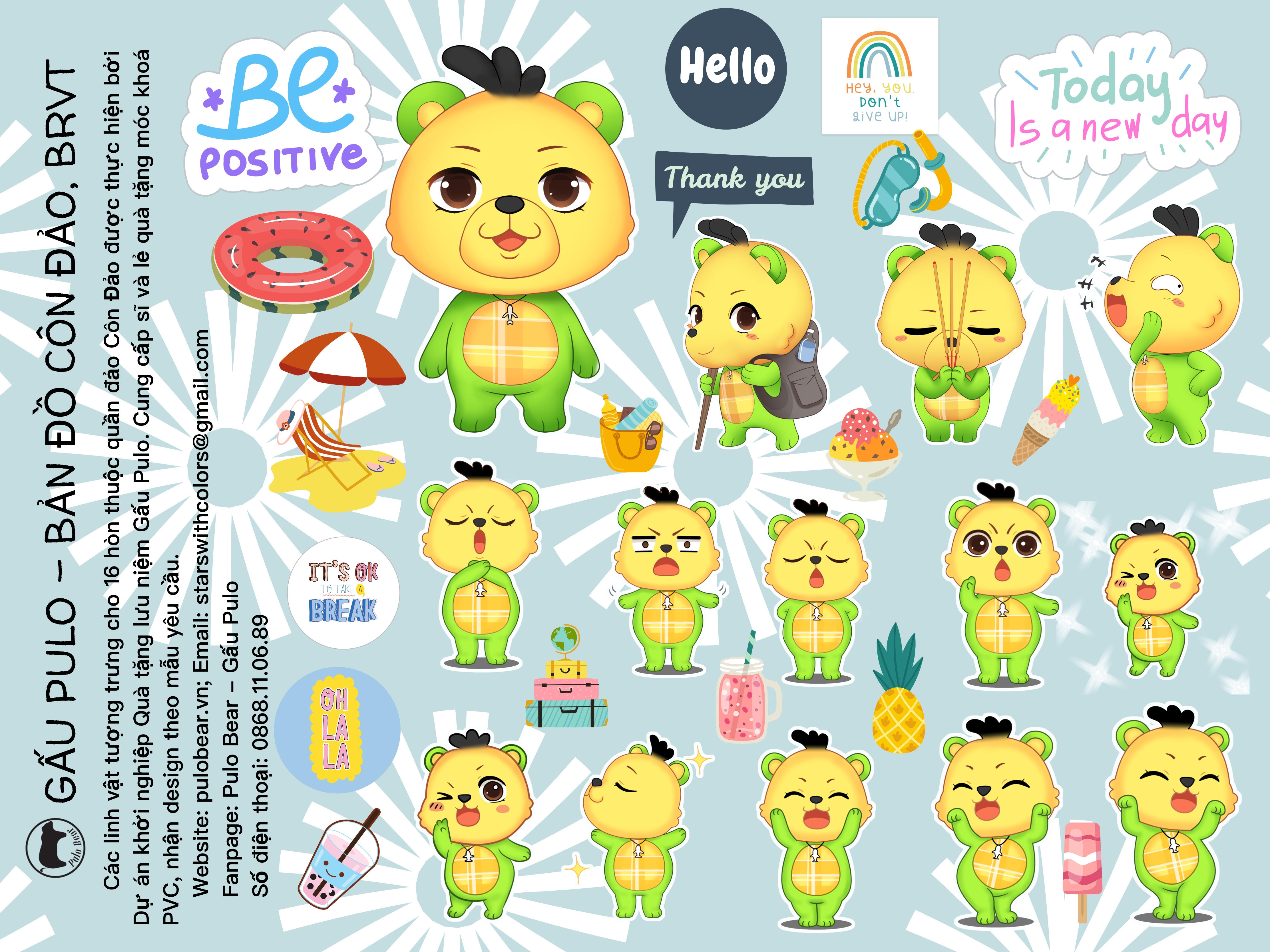 Bộ sticker mang tính thương hiệu riêng biệt – chỉ có ở Gấu Pulo.