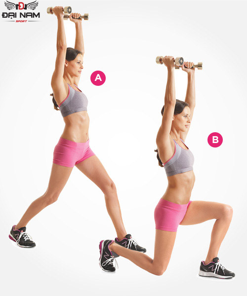 *Đứng nâng tạ bằng hai tay để tập cơ tay