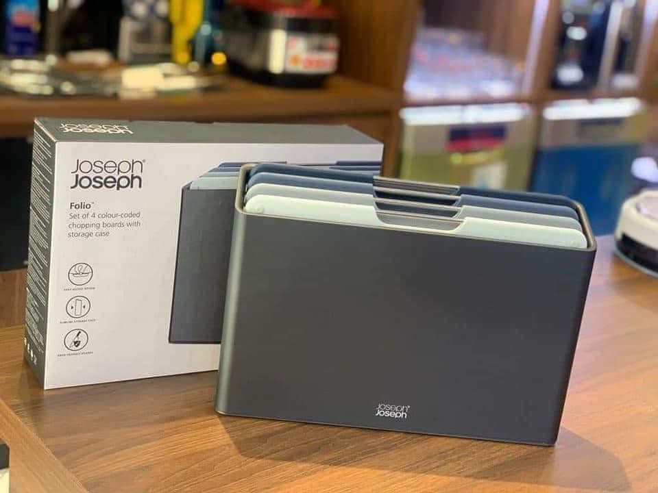 Bộ thớt Joseph Joseph gồm 4 tấm thớt bằng nhựa tổng hợp siêu nhẹ, siêu mỏng. giải quyết những vấn đề khó khăn mà các bà nội trợ thường xuyên gặp phải .