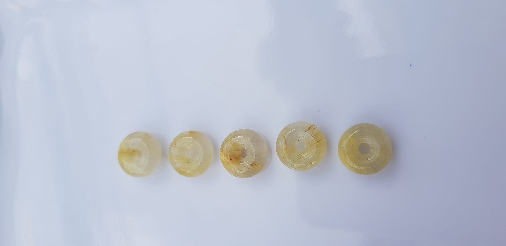 Bộ Trang Sức Phong Thủy 5 Đồng tiền đá thạch anh tóc vàng may mắn tài lộc đk 10mm cao 4,5mm lỗ 2mm