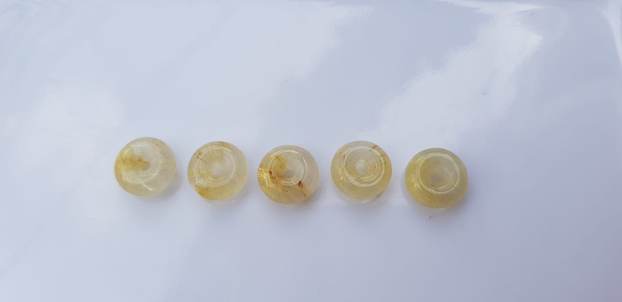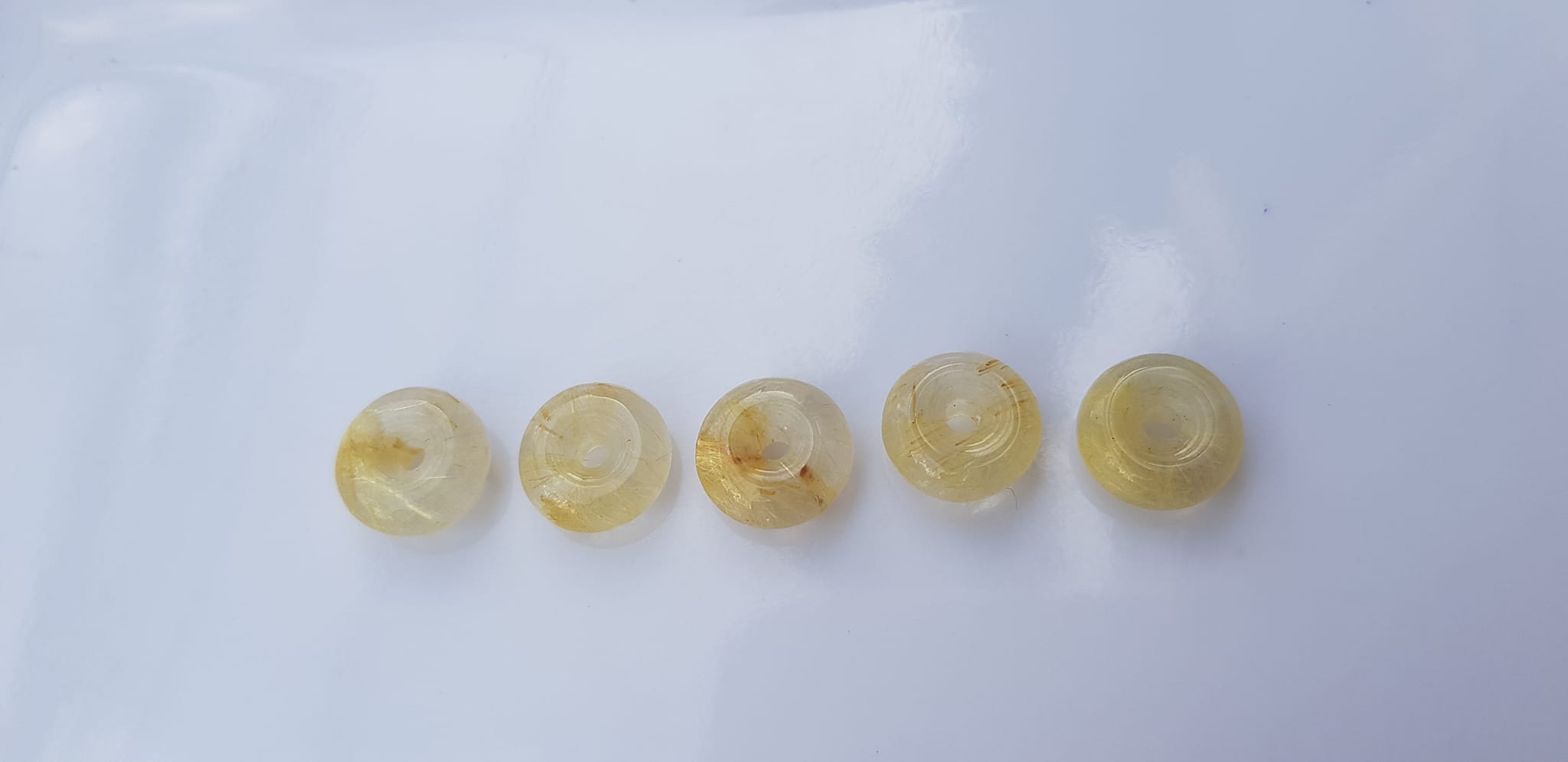 ✨Bộ Trang Sức Phong Thủy 5 Đồng tiền đá thạch anh tóc vàng may mắn tài lộc Size đk 10mm x cao 4,5mm x lỗ 2mm mệnh Kim mệnh Thổ và mệnh Thủy Nữ phối lên bộ lắc tay hay mặt dây chuyền vàng đeo xinh đẹp may mắn ạ