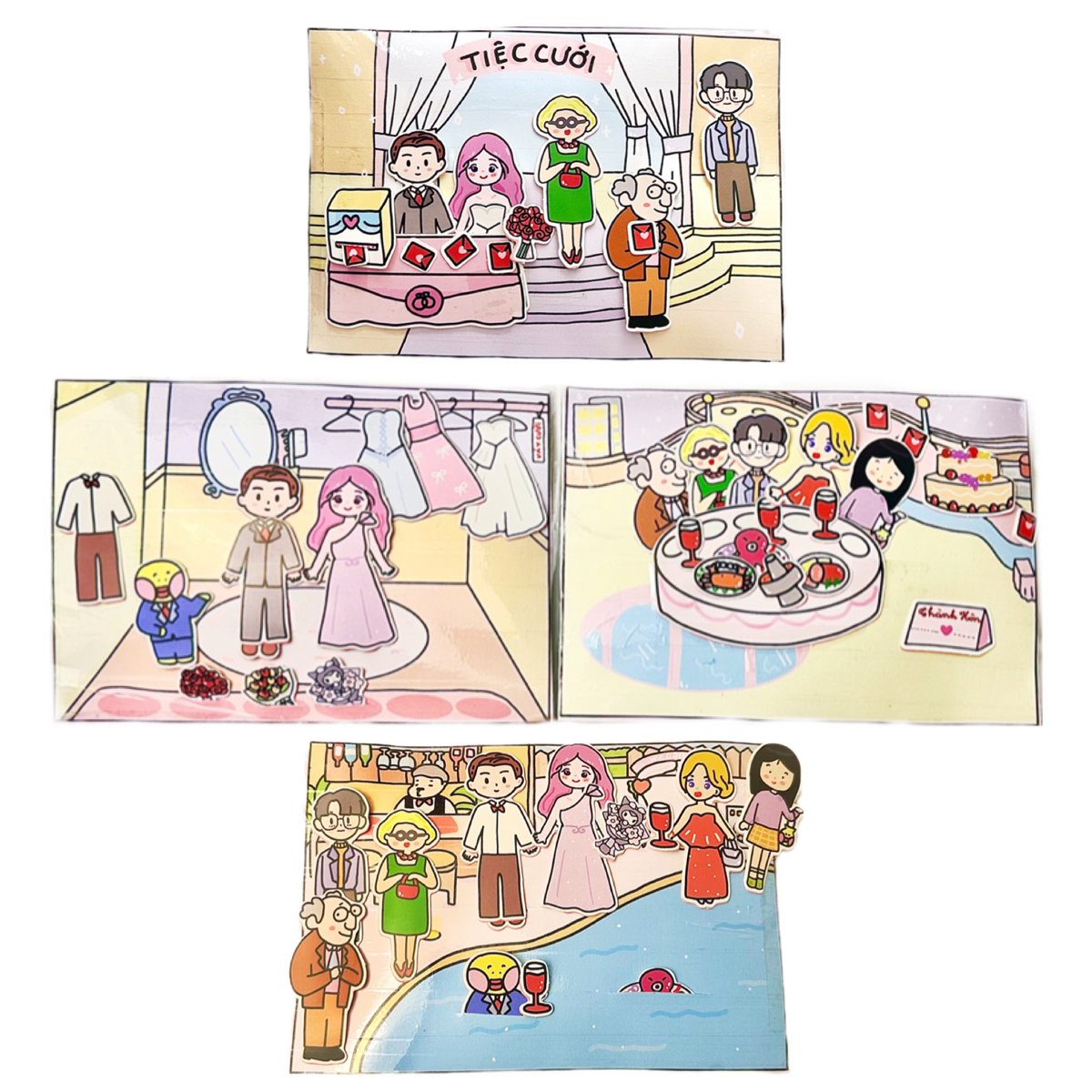 ✨Bộ Tranh Tương Tác Cô Tiên Xanh - Tổ Chức Tiệc Cưới