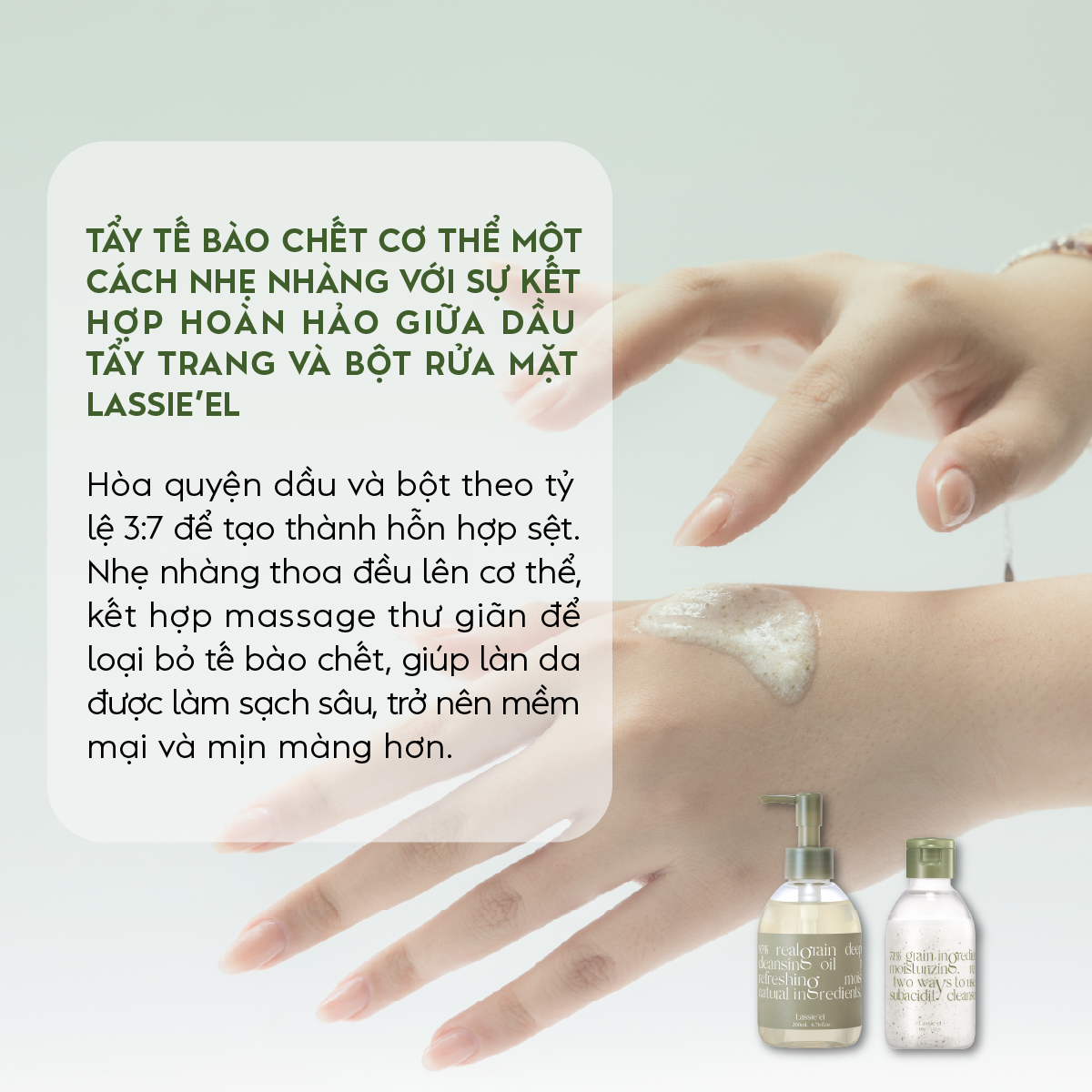 Bằng những chuyển động thầm lặng nhưng vô cùng nghiêm túc cùng với sự biết ơn những nguyên liệu thô có được từ thiên nhiên, Lassie’el đã tạo nên những sản phẩm mà ngay từ lần đầu sử dụng, làn da của bạn sẽ cảm nhận rõ ràng sự thanh lọc và chữa lành.