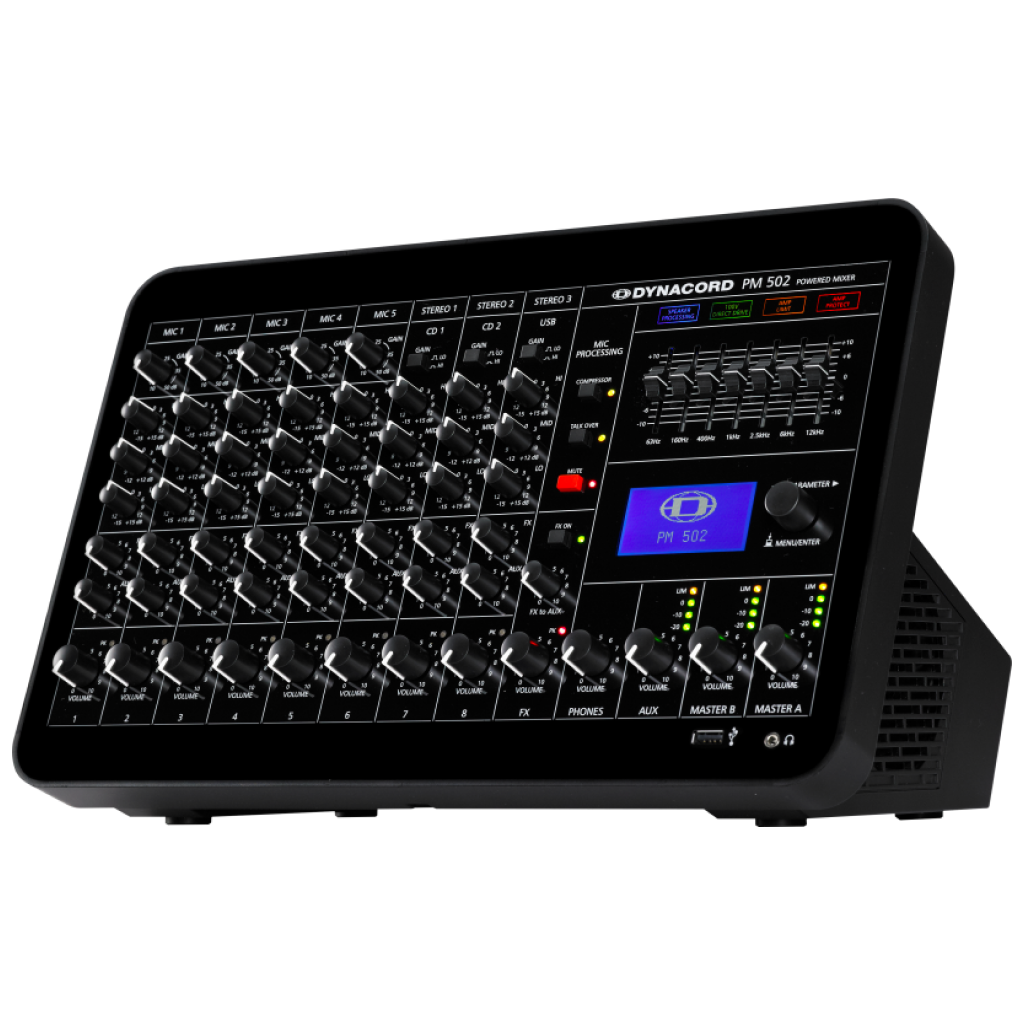 - Cấu trúc đầu vào, cùng với toàn bộ gói tính năng và khả năng kết nối, đặt bộ trộn này vào vị trí trung tâm của nhiều cơ sở lắp đặt. Hơn nữa PM 502 là một công cụ cực kỳ linh hoạt cho vô số ứng dụng trực tiếp. Đây sẽ là lựa chọn lý tưởng cho những nghệ sĩ giải trí, DJ và các ban nhạc nhỏ đang tìm kiếm một giải pháp nhỏ gọn và nhẹ cho các ứng dụng trực tiếp hoặc địa điểm diễn tập. Máy nghe nhạc MP3 tích hợp ở mặt trước cho phép người dùng dễ dàng phát nhạc đã ghi sẵn từ thẻ nhớ USB hoặc ổ cứng. Giao diện USB kỹ thuật số bổ sung ở phía sau cũng cho phép ghi âm cơ bản bằng PC.