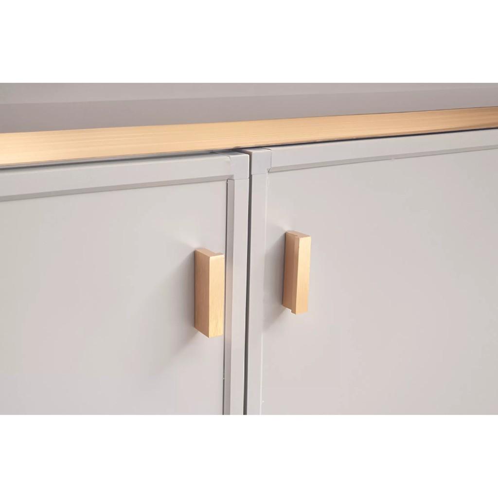 - Cánh tủ được bọc viền chỉ màu vàng, kết hợp tay nắm sang trọng