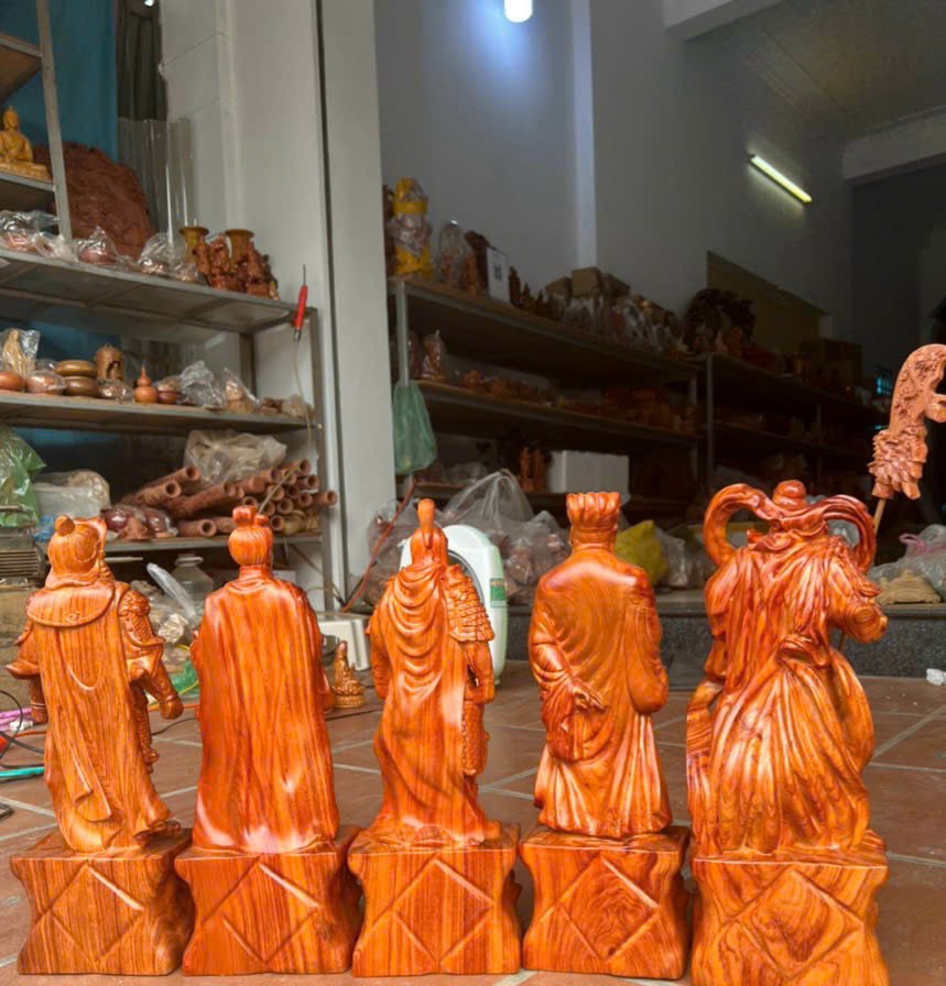 Mua tại Tiktok_ Bộ tượng ngũ hổ tướng được làm bằng chất liệu gỗ hương đá liền khối tự nhiên 100%