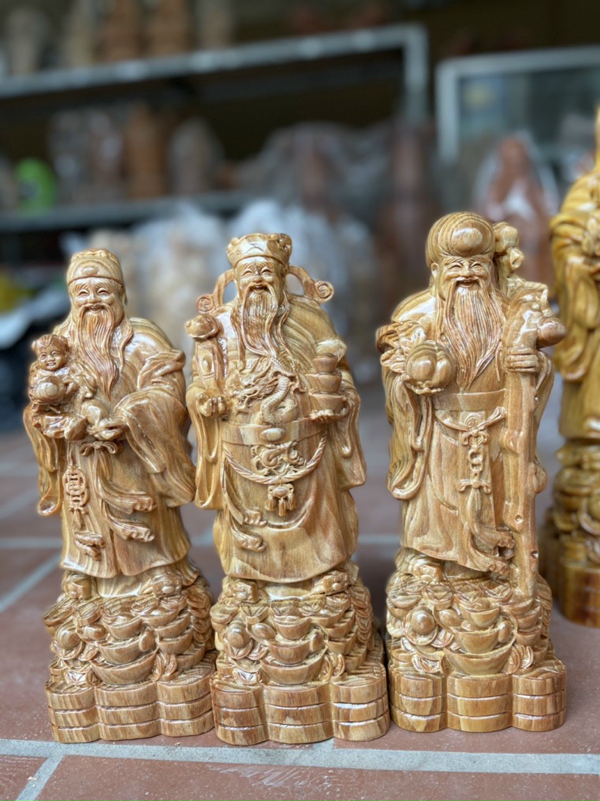 Báo giá cả lô tượng Tam Đa Phúc Lộc Thọ từ gỗ bách xanh, ngọc am, hương, trắc dây, huyết long …